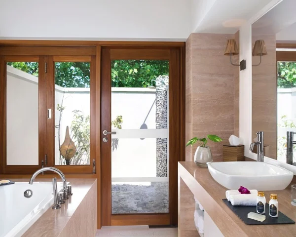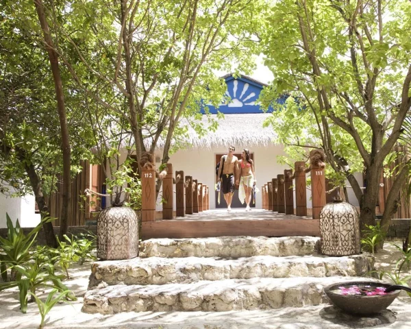 Taj Coral Reef Resort & Spa is a luxurious 5-star resort located on the heart-shaped Henbadhu Island in Kaafu Atoll, accessible via a 45-minute speedboat ride from Velana International Airport.