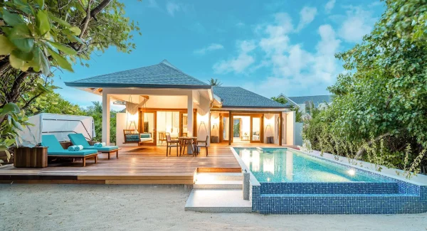 Hideaway Beach Resort & Spa is a luxury private-island resort in Haa Alifu Atoll, offering spacious villas with private pools, pristine beaches, and world-class dining and wellness experiences.