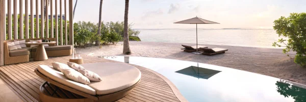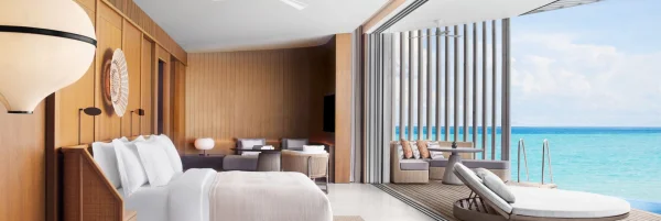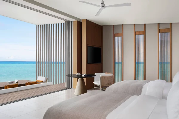 The Ritz-Carlton Maldives features contemporary beachfront and overwater villas with private pools, multiple dining venues, a luxury spa, and curated marine and wellness experiences. Guests can enjoy water sports, family-friendly amenities, cultural activities, and access to the vibrant Fari Islands community.