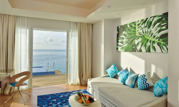 Kandima Maldives features stylish beach and overwater villas, multiple restaurants and bars, a wellness spa, and extensive water sports and activities. The resort also offers family-friendly facilities, vibrant entertainment, and wellness and fitness programs.