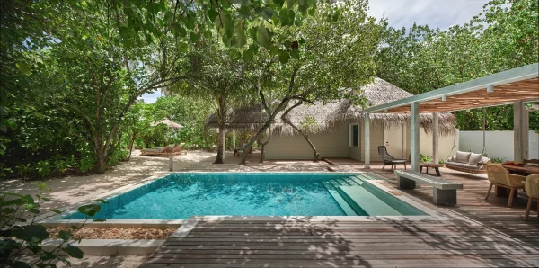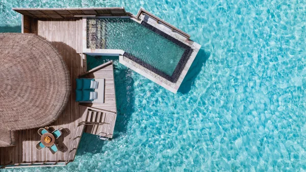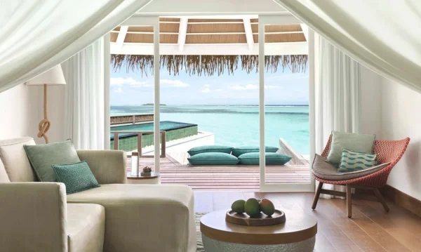 Six Senses Kanuhura features stylish beach and overwater villas with private pools, multiple restaurants and bars, and a holistic spa. Guests can enjoy snorkeling, diving, water sports, wellness programs, and curated cultural and nature-based experiences.