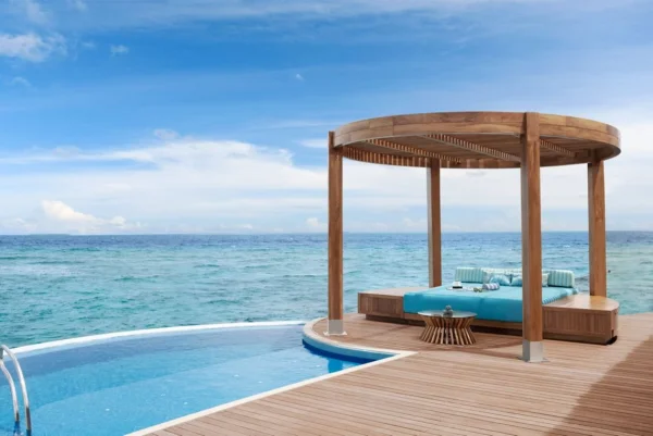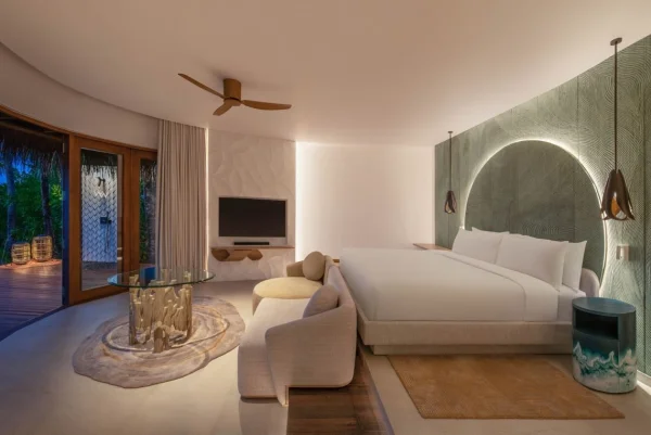 W Maldives features contemporary beach and overwater villas with private pools, multiple dining destinations, and a full-service AWAY® Spa. Guests can enjoy a variety of water sports, vibrant pool and beach lounges, curated wellness and social activities, and access to a stunning house reef.