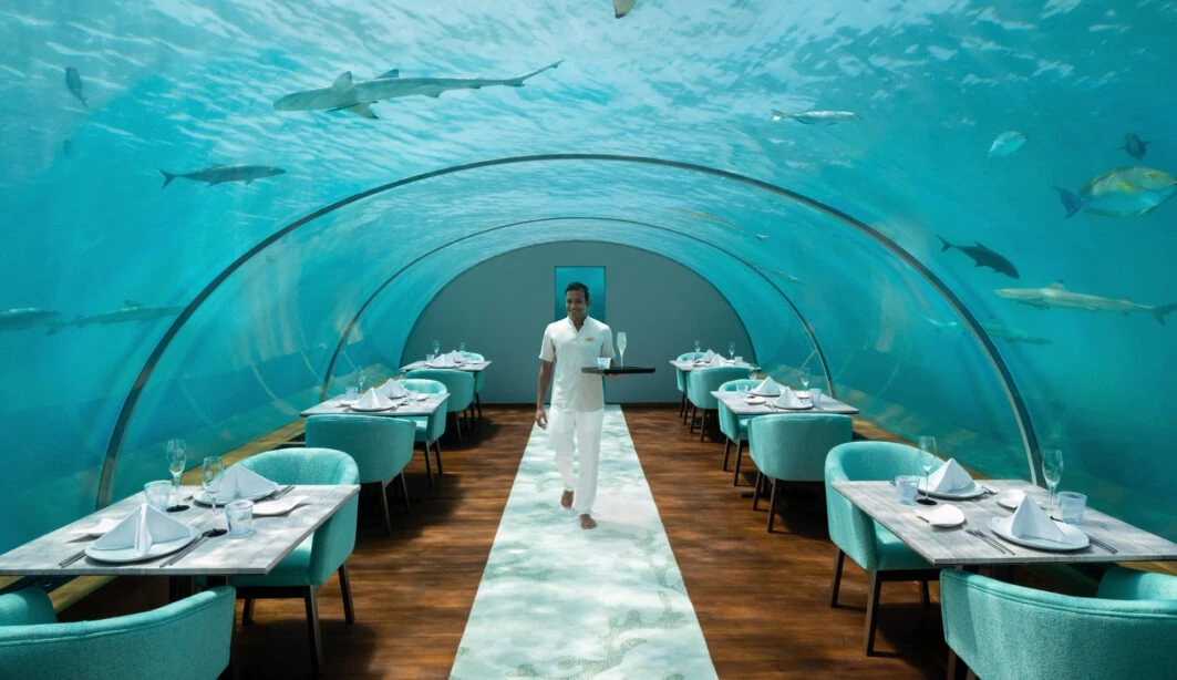 Conrad Maldives Rangali Island is a luxury resort set across two private islands, renowned for its overwater villas, iconic underwater dining, and vibrant marine life in the South Ari Atoll.