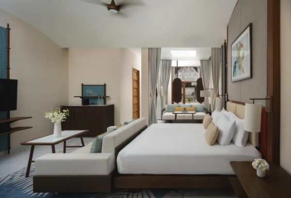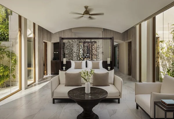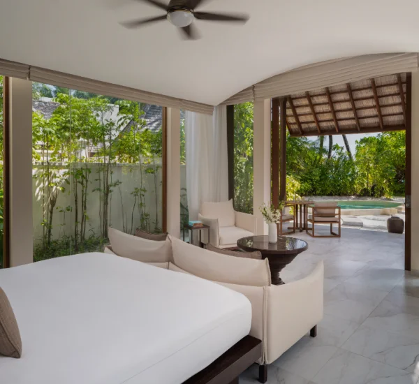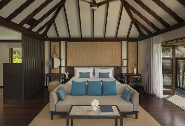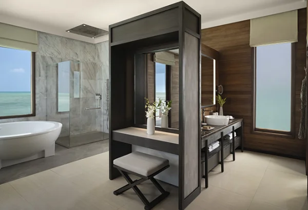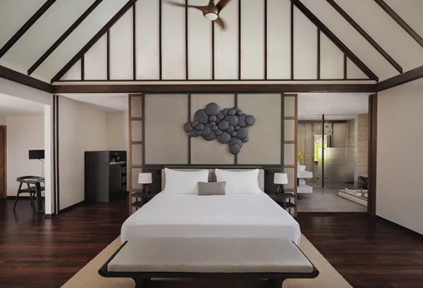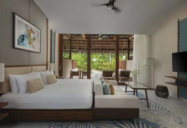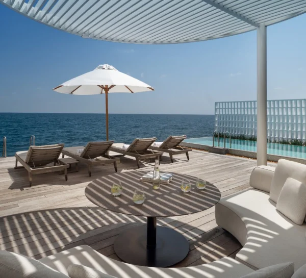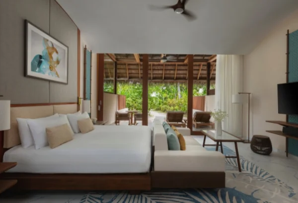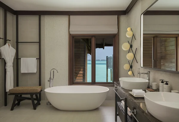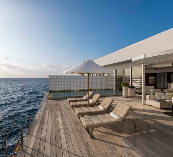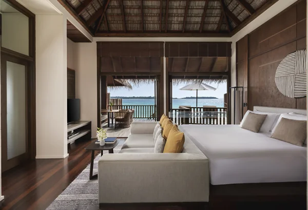 Conrad Maldives Rangali Island features beach and overwater villas, including the iconic underwater residence The Muraka, along with multiple gourmet dining venues and a luxury spa. Guests can enjoy snorkeling, diving, water sports, and exceptional marine experiences across two private islands.