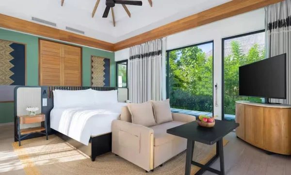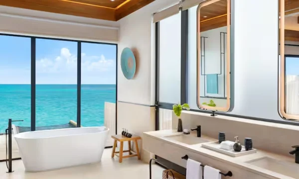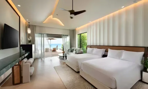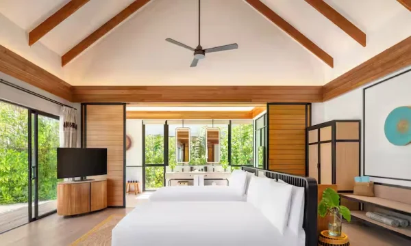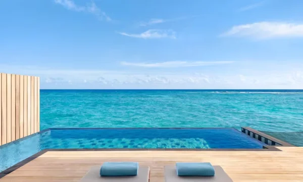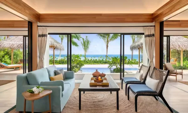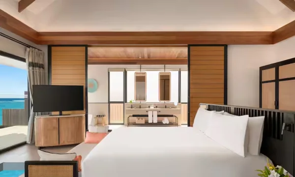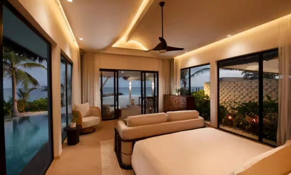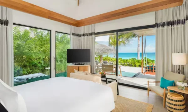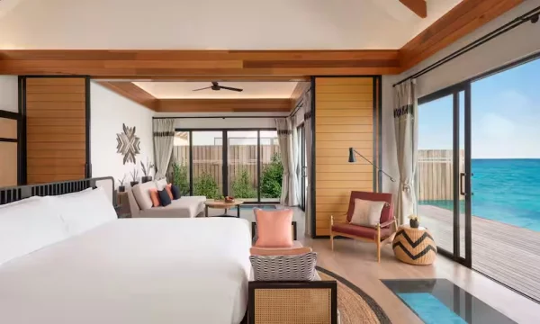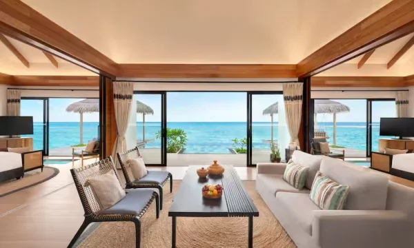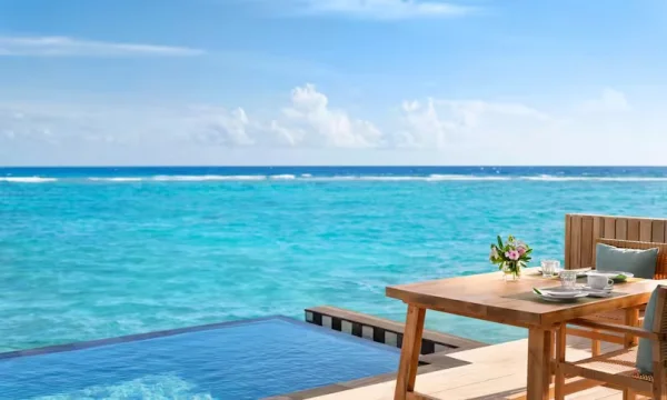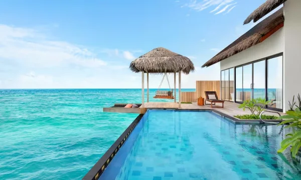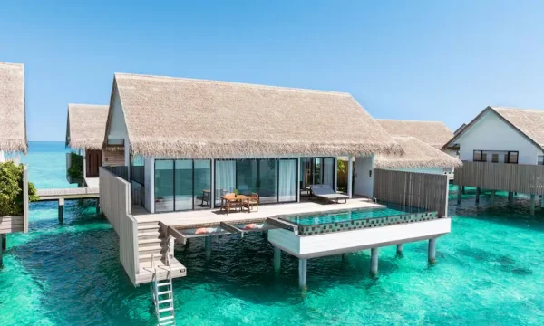 Hilton Maldives Amingiri Resort & Spa features spacious beachfront and overwater villas with private pools, multiple dining options, and a full-service spa. Guests can enjoy water sports, snorkeling, family-friendly amenities, and wellness experiences in a tranquil lagoon setting.