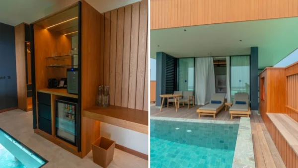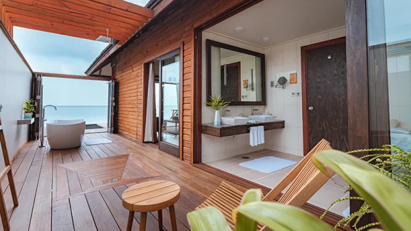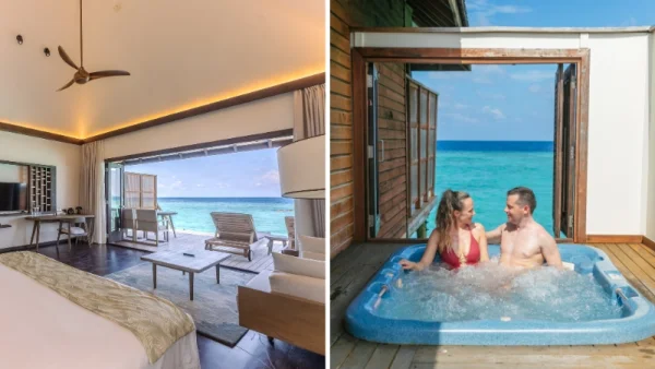 Private villas, dining options, spa services, and activities like snorkeling and diving.