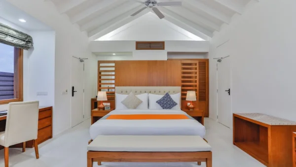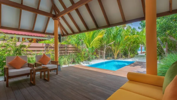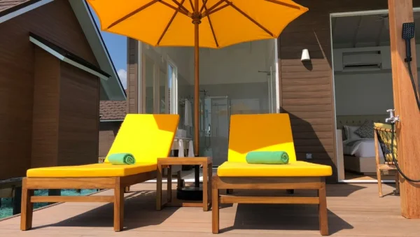 A secluded tropical escape offering both relaxation and adventure, with access to the vibrant marine life of the surrounding reef.