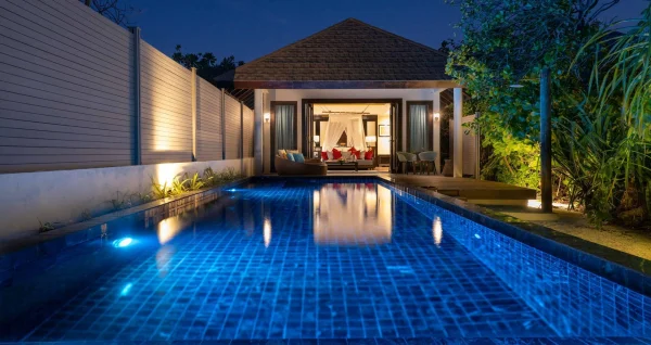 The resort offers 162 beachfront and overwater villas, some with private pools. Guests enjoy diverse dining options, water sports, wellness at the Akiri Spa, and activities including excursions and live entertainment.