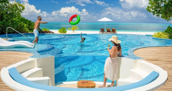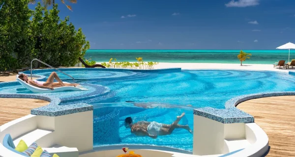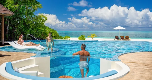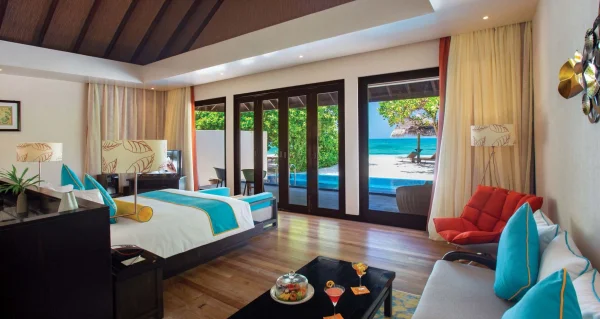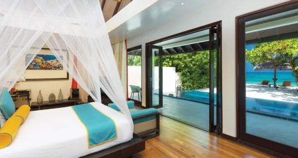 Atmosphere Kanifushi is a premium all-inclusive resort, offering spacious beachfront villas with direct lagoon access.