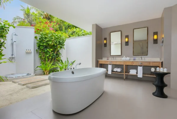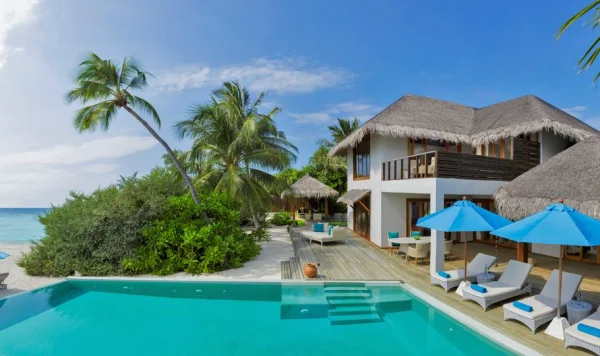Dusit Thani Maldives is a luxury resort in Baa Atoll, offering elegant villas with private pools, fine dining, an award-winning spa, and easy access to Hanifaru Bay for manta ray sightings.
