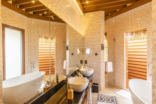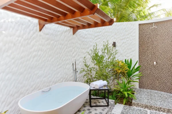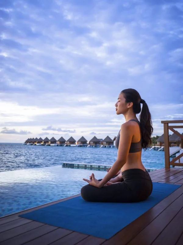 The resort offers two restaurants, a spa, dive center, fitness facilities, and a range of water and land activities, all set in a peaceful atoll.