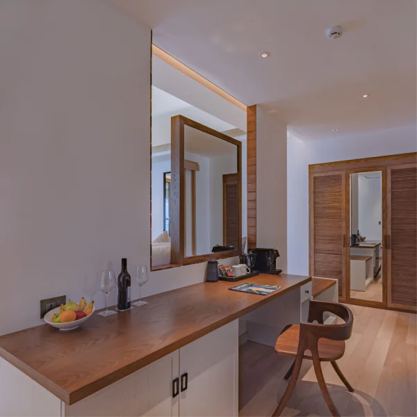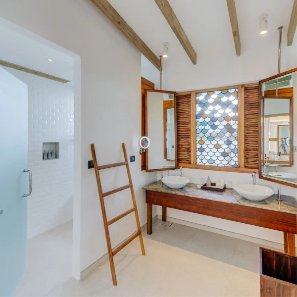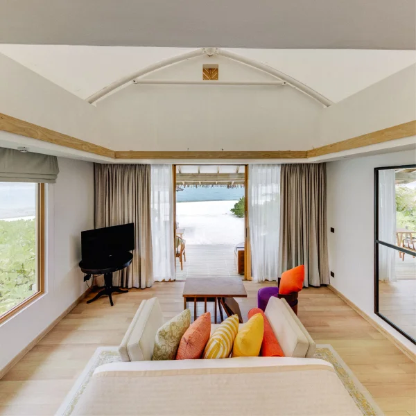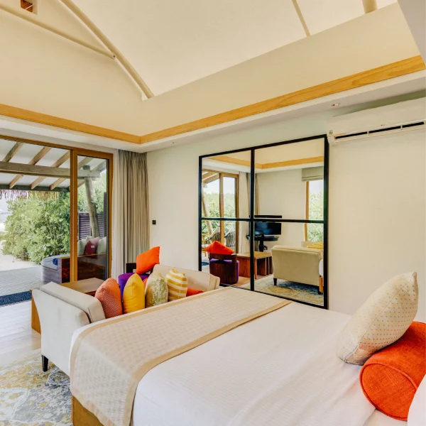 The hotel features 80 villas, including beachfront, overwater, and adults-only Platinum Beach Bungalows with private facilities. The resort offers multiple dining options, an overwater spa, a dive center, and activities like snorkeling, sunset fishing, and dolphin cruises.
