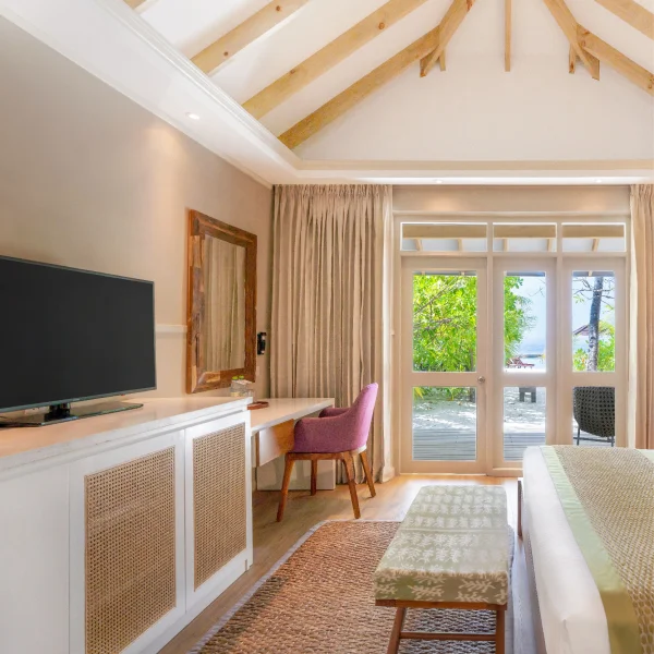 Ellaidhoo Maldives by Cinnamon is a peaceful resort in North Ari Atoll featuring 112 traditional-style rooms and direct access to a vibrant house reef ideal for snorkeling and diving. The resort offers multiple dining options, a spa, and is committed to sustainability through coral restoration and eco-friendly practices.