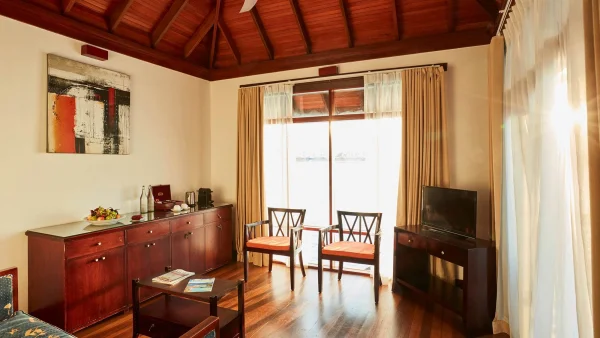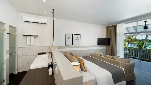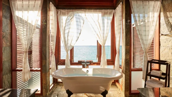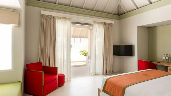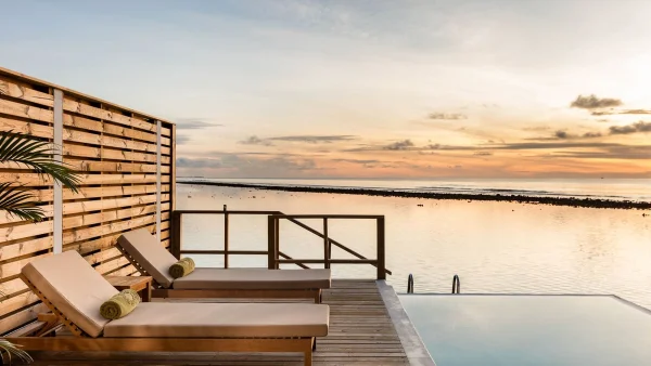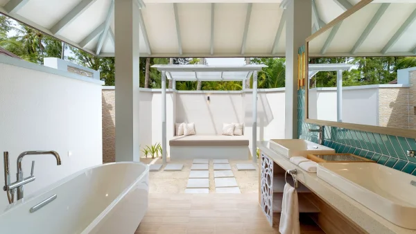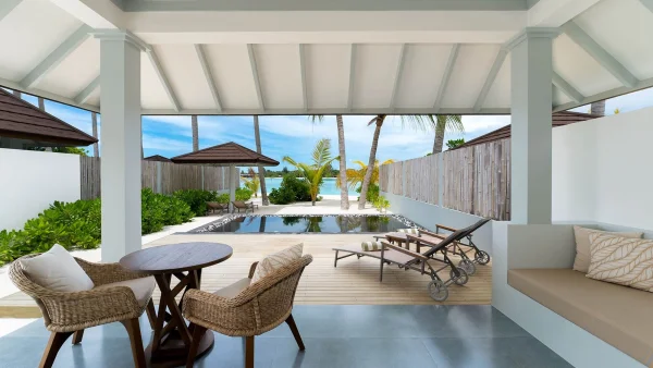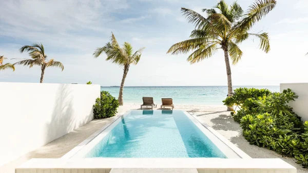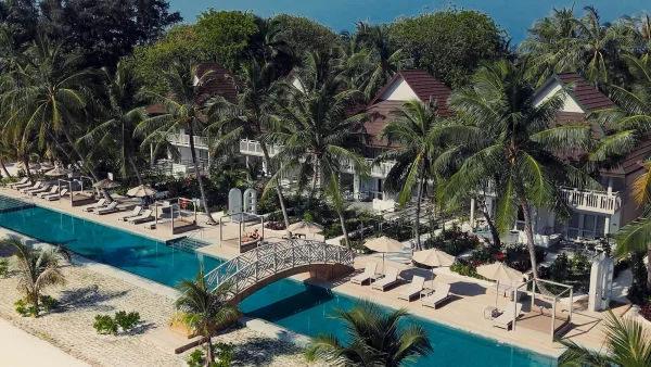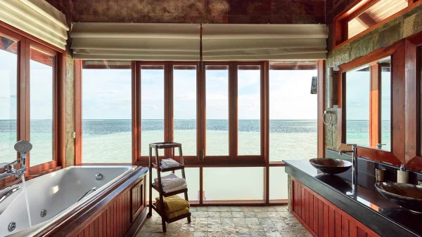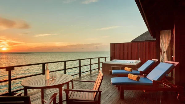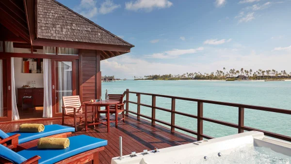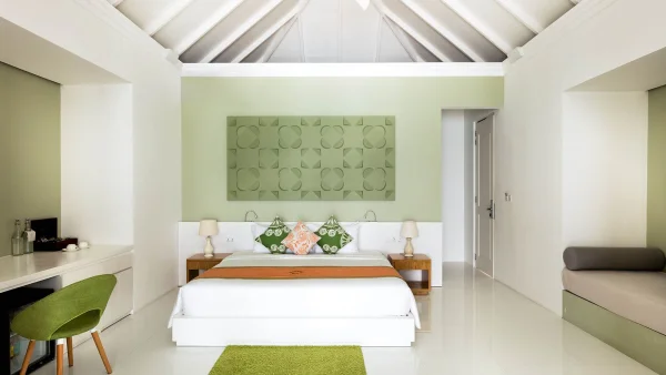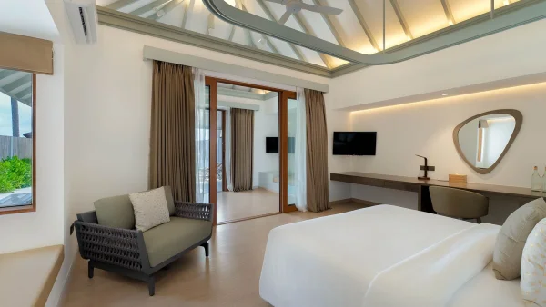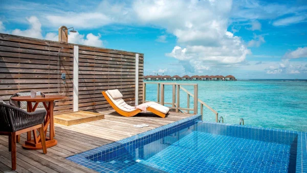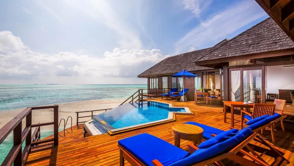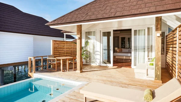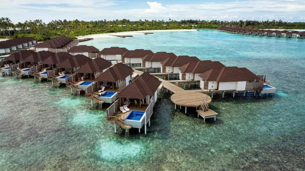 Sun Siyam Olhuveli is a luxurious resort in the south of Kaafu Atoll, offering a diverse range of accommodations, including beach and overwater villas, complemented by 17 dining venues, three swimming pools, and a variety of water sports and wellness facilities.