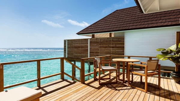The resort features overwater and beachfront villas and multiple dining options. Additionally the resort offers water sports, diving, and spa services.
