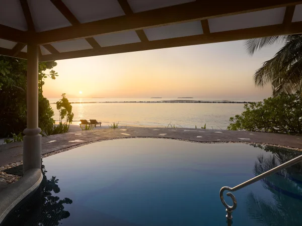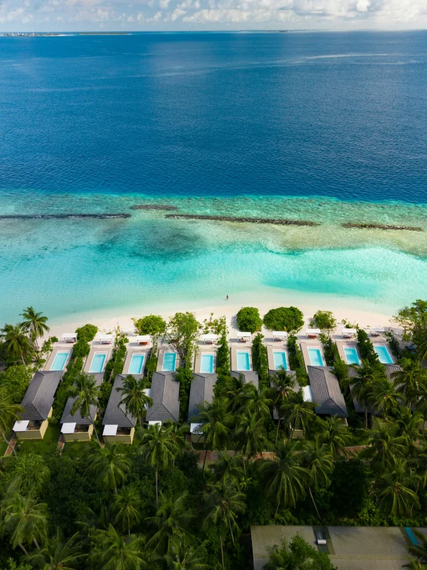 The resort features beachfront villas, multiple dining options, a full-service spa, and a variety of water sports and excursions, all set in the pristine Baa Atoll biosphere reserve.