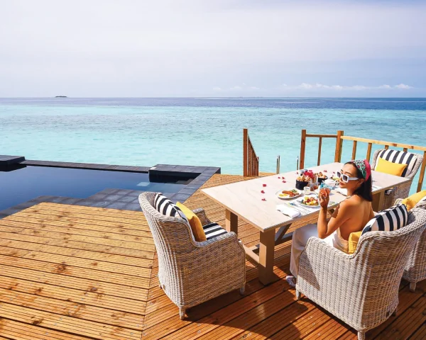 As part of CROSSROADS Maldives, guests enjoy access to The Marina, featuring diverse dining options, boutique shopping, and family-friendly activities, all set against the backdrop of the stunning lagoon.