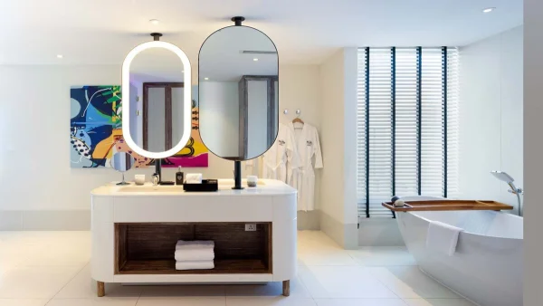 Guests can enjoy diverse dining experiences, including a Pan-Latin restaurant and the iconic Hard Rock Café, along with access to The Marina CROSSROADS, which boasts a 30-berth quay, boutique shops, and entertainment options.