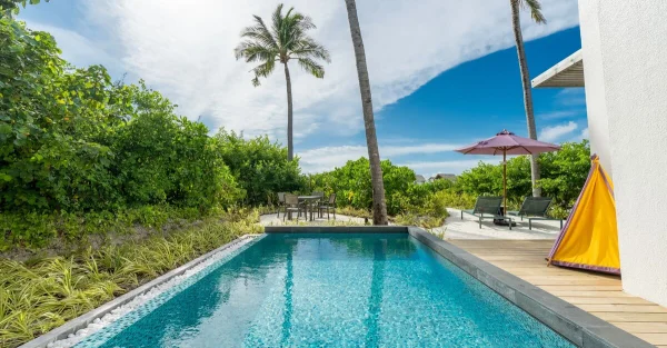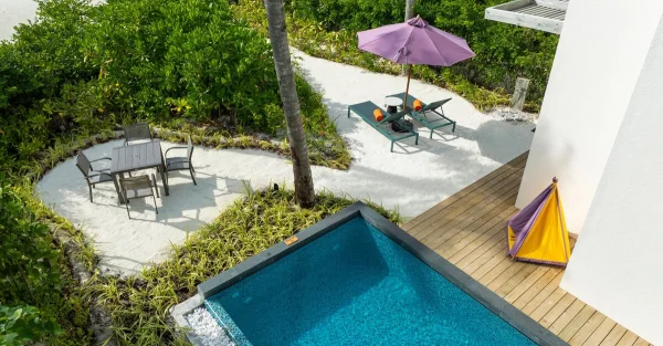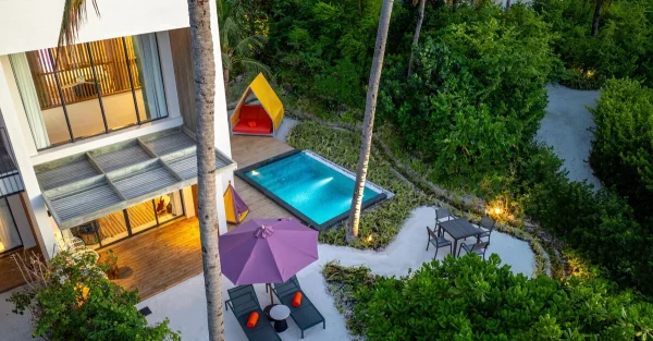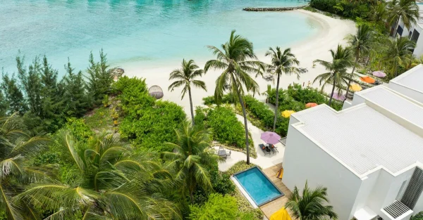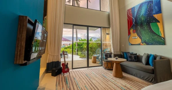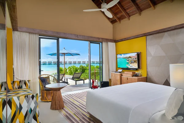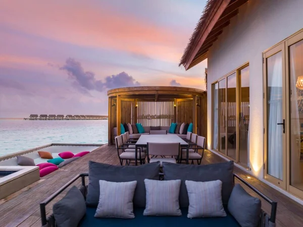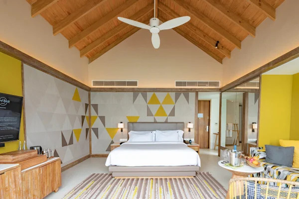Hard Rock Hotel Maldives is a vibrant resort located in Emboodhoo Lagoon. As part of the CROSSROADS Maldives integrated resort, it offers spacious villas, including family suites and overwater options.