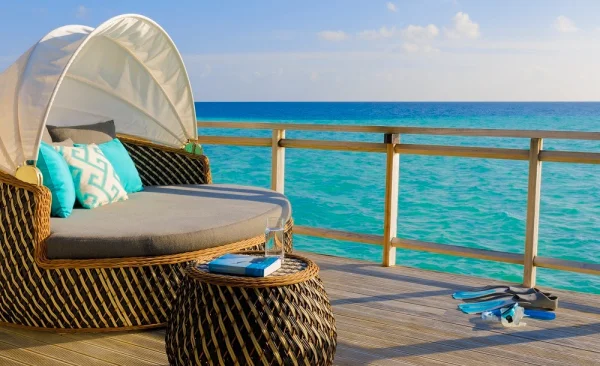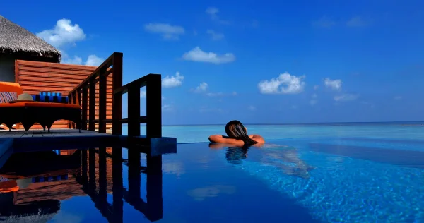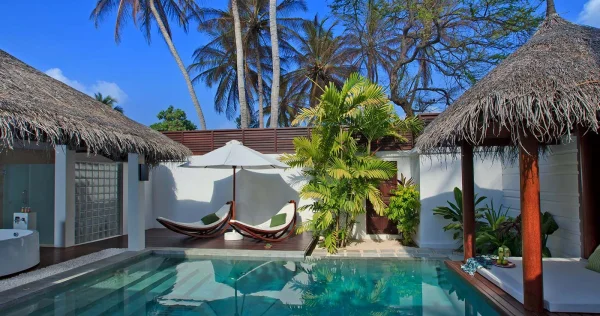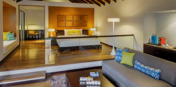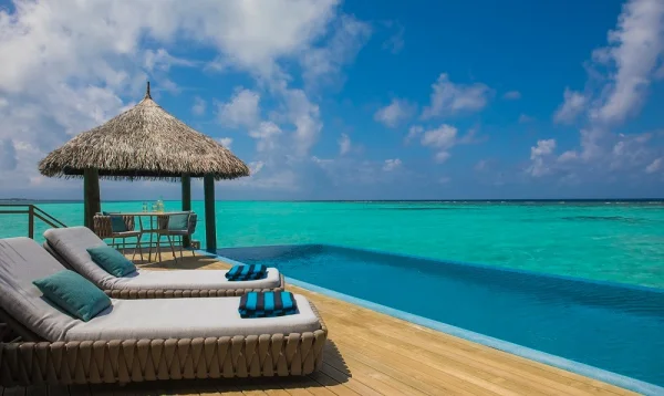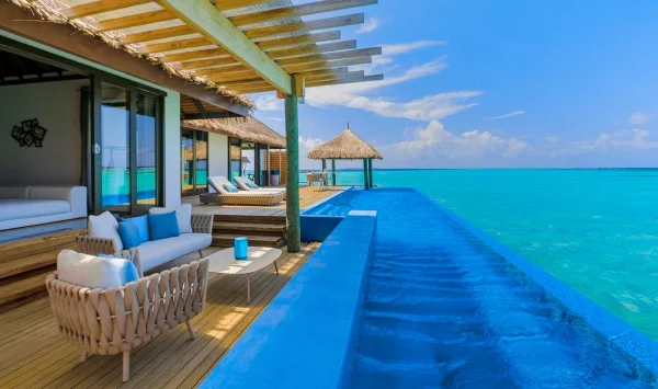 The resort offers contemporary villas and bungalows, each with direct beach or lagoon access, complemented by five dining venues, an overwater spa, infinity pool, and a range of water sports and activities.