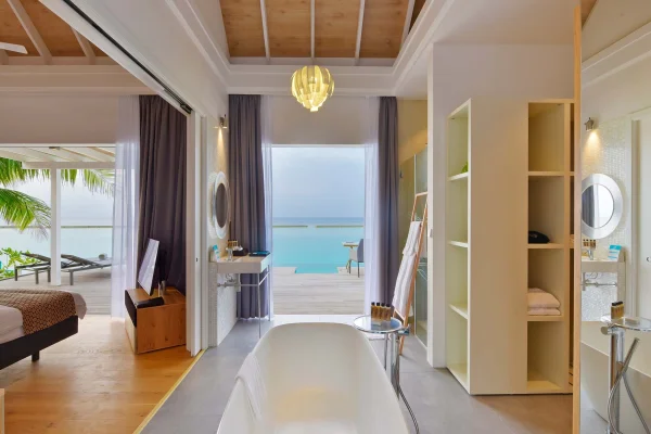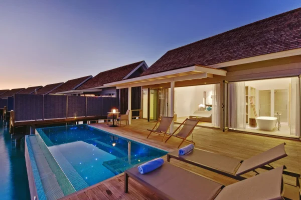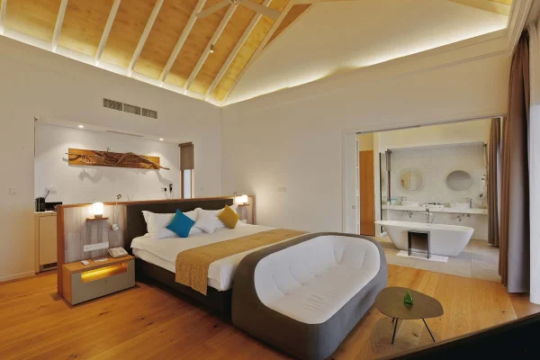 The resort presents 18 dining venues, multiple swimming pools, a spa, a kids' club, and diverse water sports, it caters to both families and couples seeking a relaxed yet vibrant island experience.
