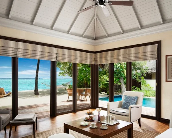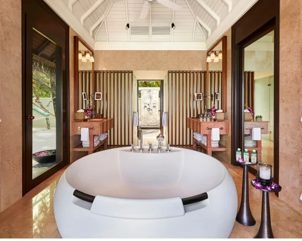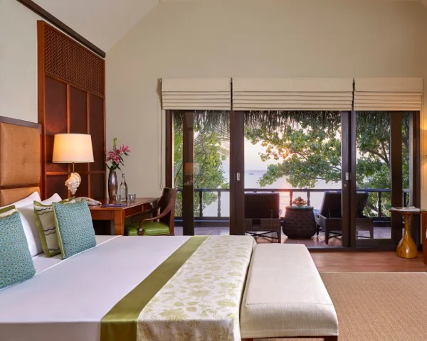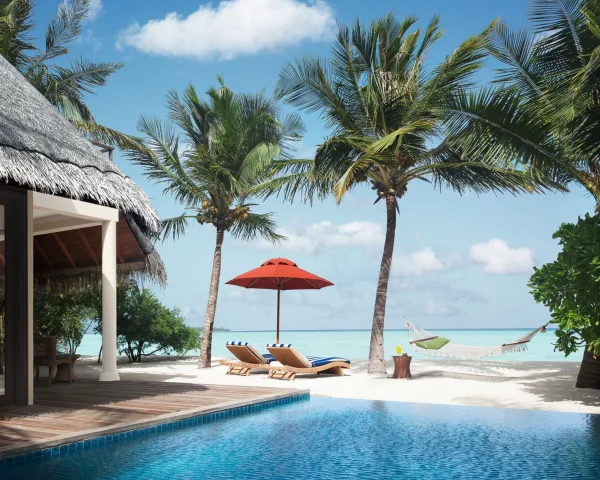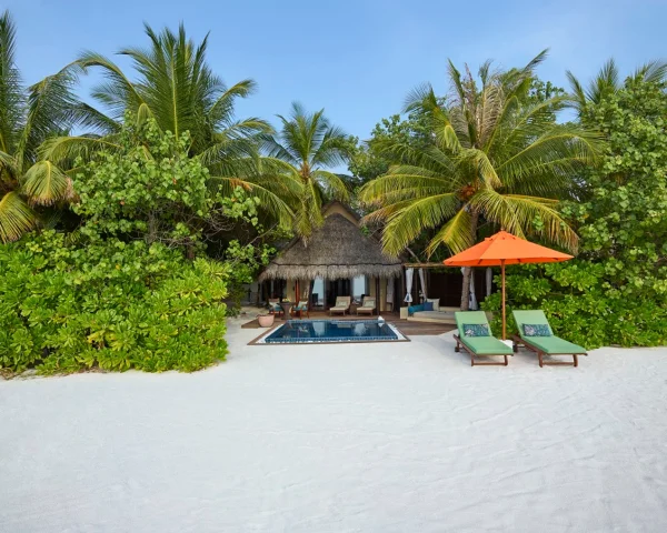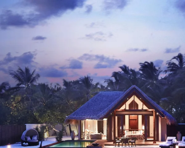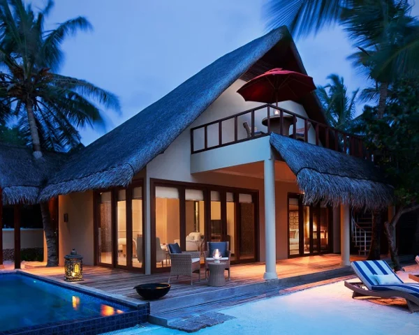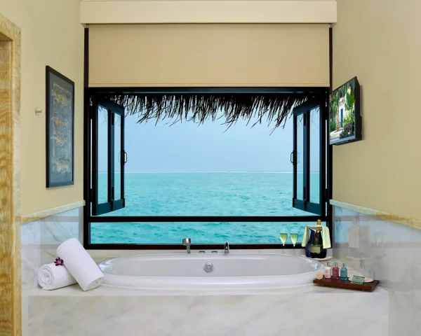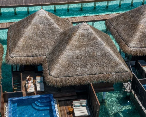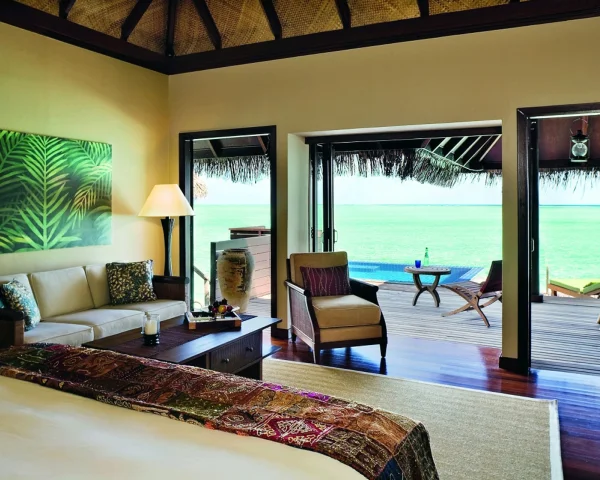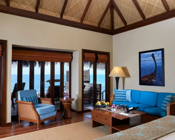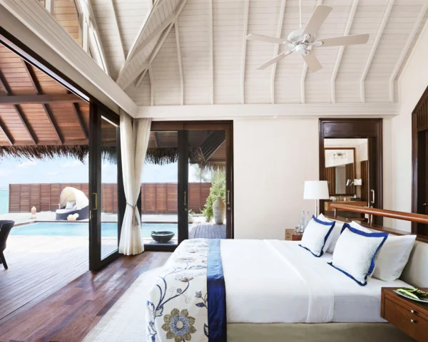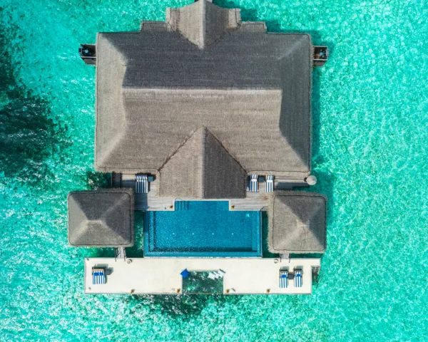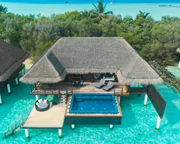 The resort features luxurious villas and suites, each offering panoramic ocean views, private plunge pools, and direct lagoon access, complemented by personalized butler service and world-class amenities.