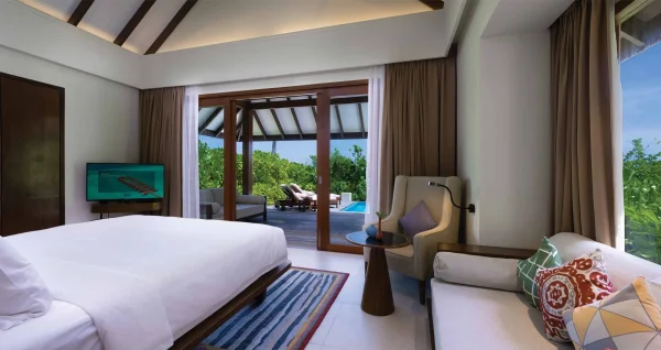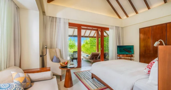The resort's design blends contemporary architecture with traditional Maldivian elements, creating a harmonious and luxurious environment. Facilities include multiple dining venues, a spa, water sports center, fitness center, and a kids' club, ensuring a comprehensive and enjoyable stay for all guests.