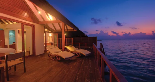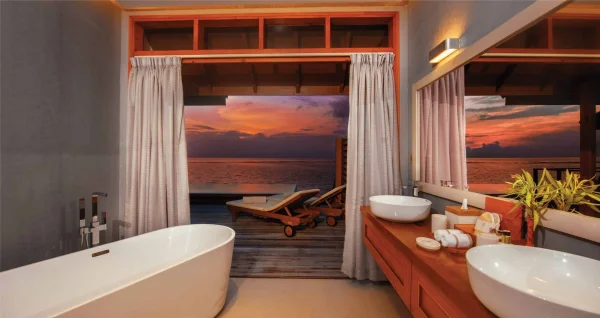 VARU by Atmosphere is a 5-star premium all-inclusive resort located on the northwest edge of Kaafu Atoll, offering an authentic Maldivian experience with luxurious villas, including beach and overwater options.