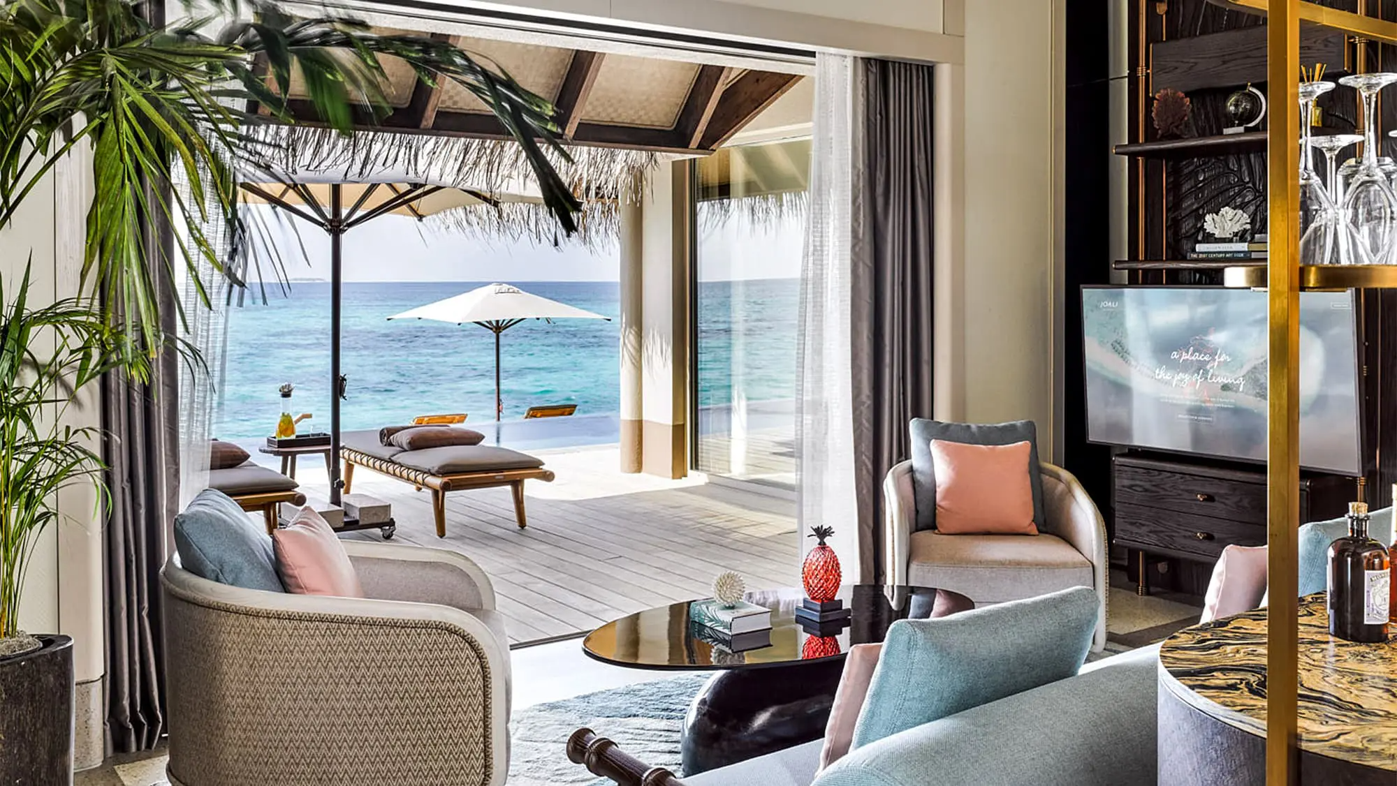 JOALI Maldives is an ultra-luxury island resort known for its art-filled design, overwater villas, and serene natural beauty.