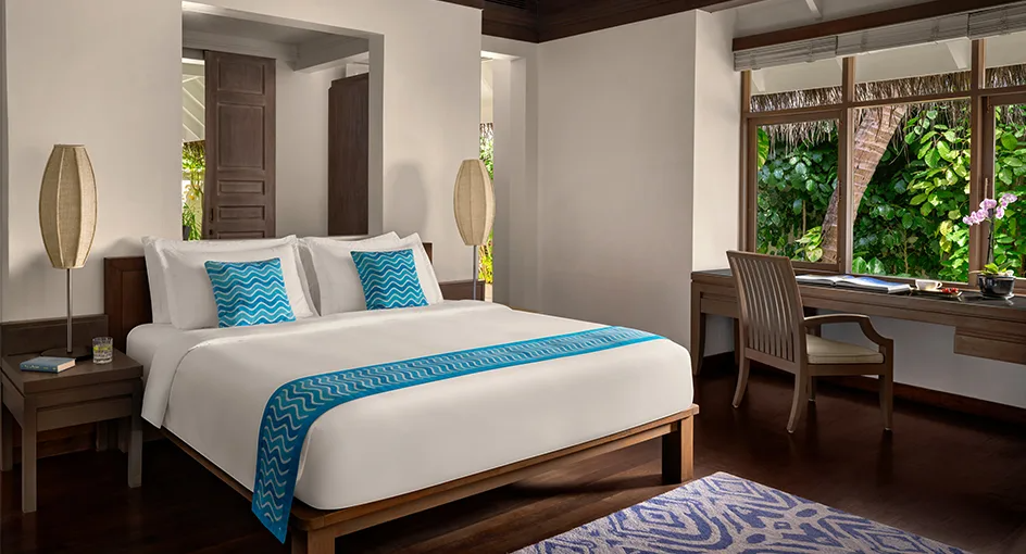 Anantara Dhigu Maldives Resort features spacious beach and overwater villas, some with private pools, along with family-friendly amenities and an overwater spa. Guests can enjoy multiple dining options, water sports, surfing, snorkeling, and easy access to nearby sister resorts.