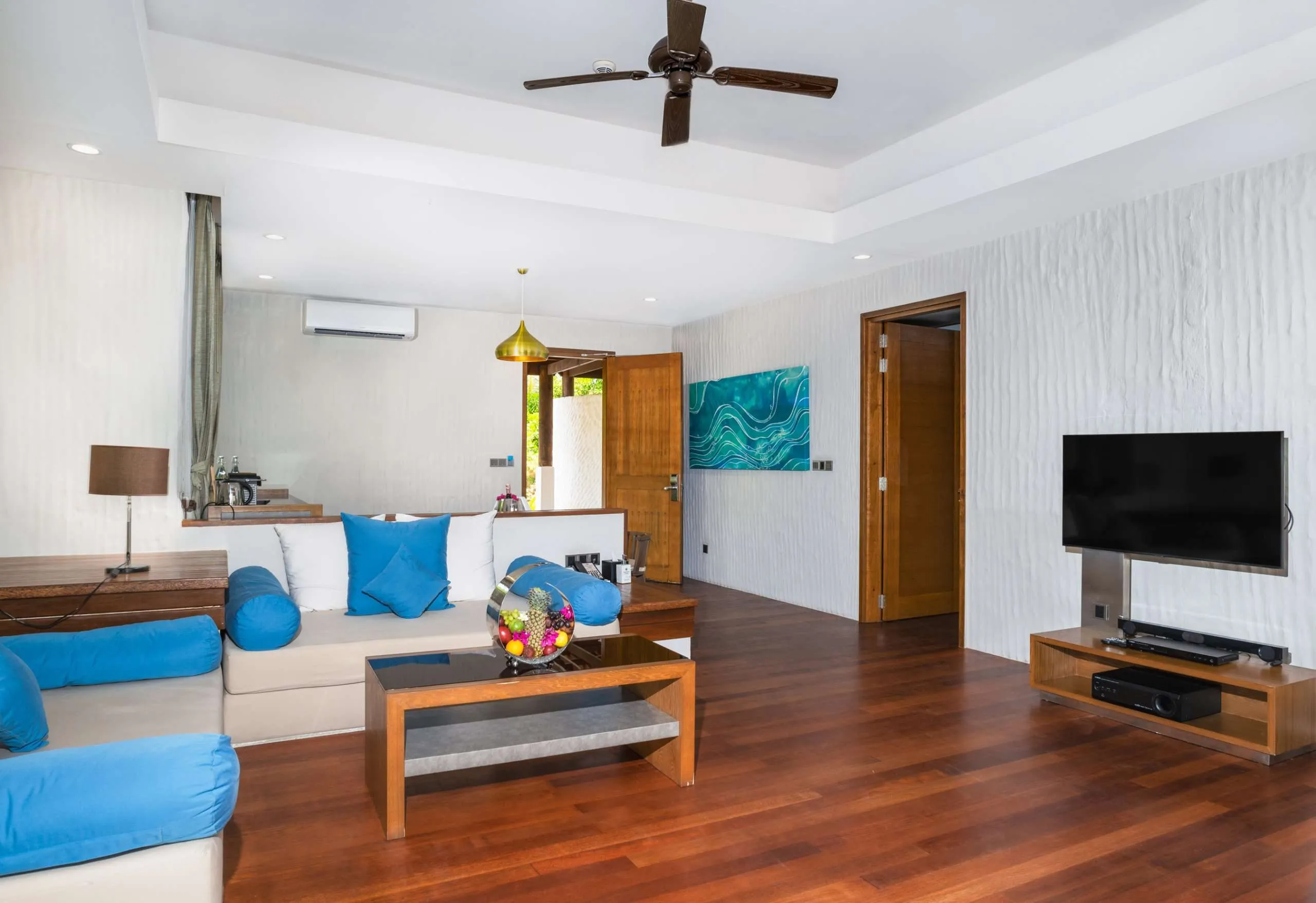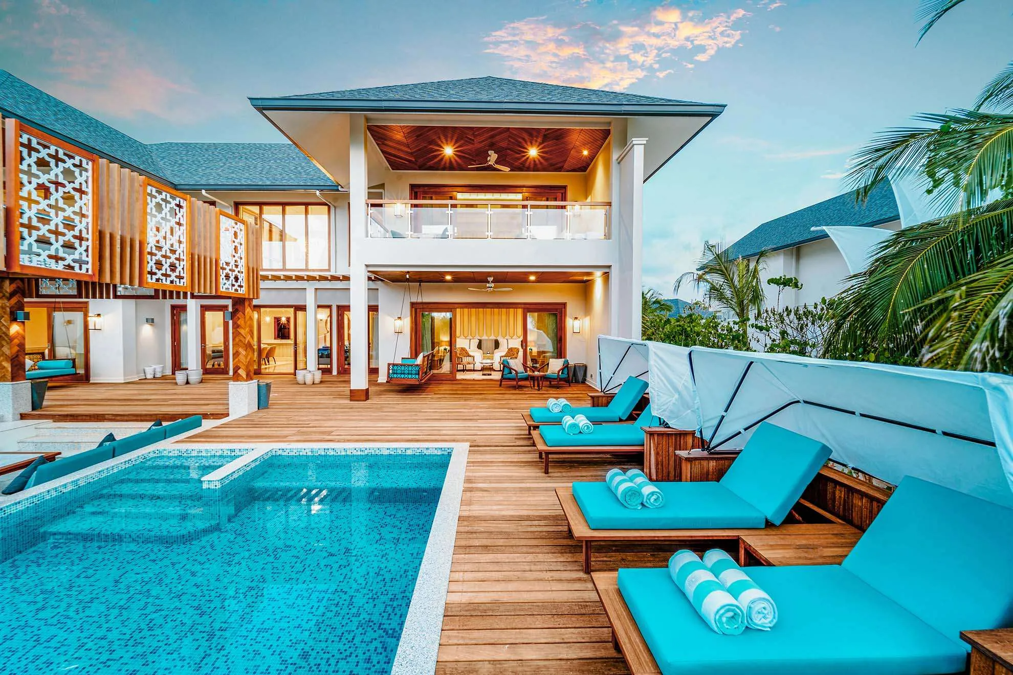 Hideaway features luxurious beach and overwater villas with private pools, a spa, multiple dining options, and a vibrant house reef for snorkeling and water sports.