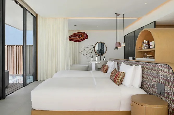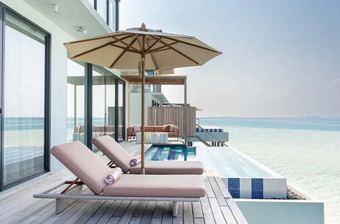 SO/ Maldives features sleek beach and water villas, multiple stylish restaurants and bars, and a full-service spa and wellness programs. Guests can enjoy water sports, a vibrant pool and beach scene, fitness and yoga activities, and curated lifestyle experiences in a contemporary, art-inspired setting.